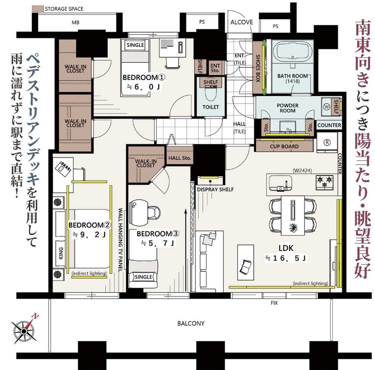 | 間取 | 3LDK + 3W (LDK16.5帖、洋室9.2帖、洋室6.0帖、洋室5.7帖) | ||