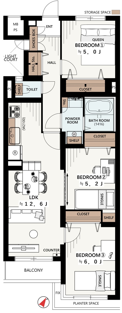 | 間取 | 3LDK (LDK12.6帖、洋室6帖、洋室5.2帖、洋室5帖) | ||