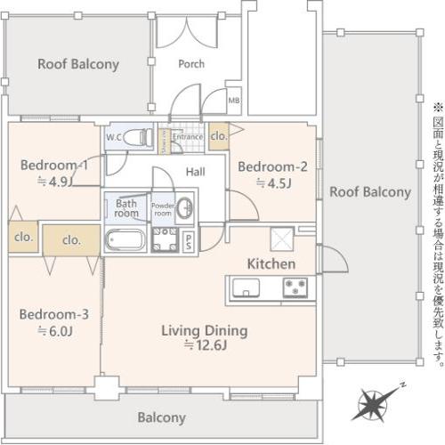 | 間取 | 3LDK (LDK12.6帖、洋室6.0帖、洋室4.9帖、洋室4.5帖) | ||